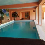 Uppvärmd bassäng och soldäck kan avnjutas på boendet.